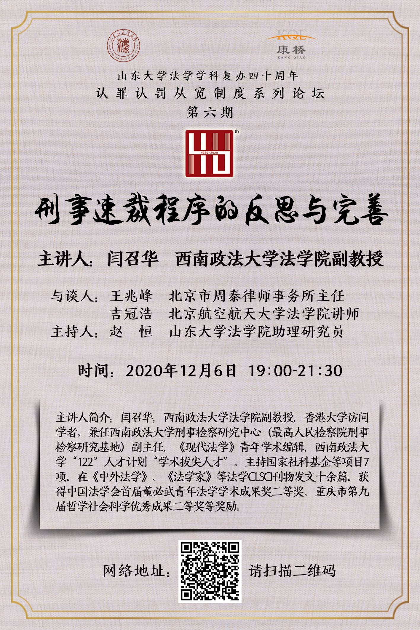 山东大学法学学科复办四十周年认罪认罚从宽制度系列论坛(第六期) 刑事速裁程序的反思与完善