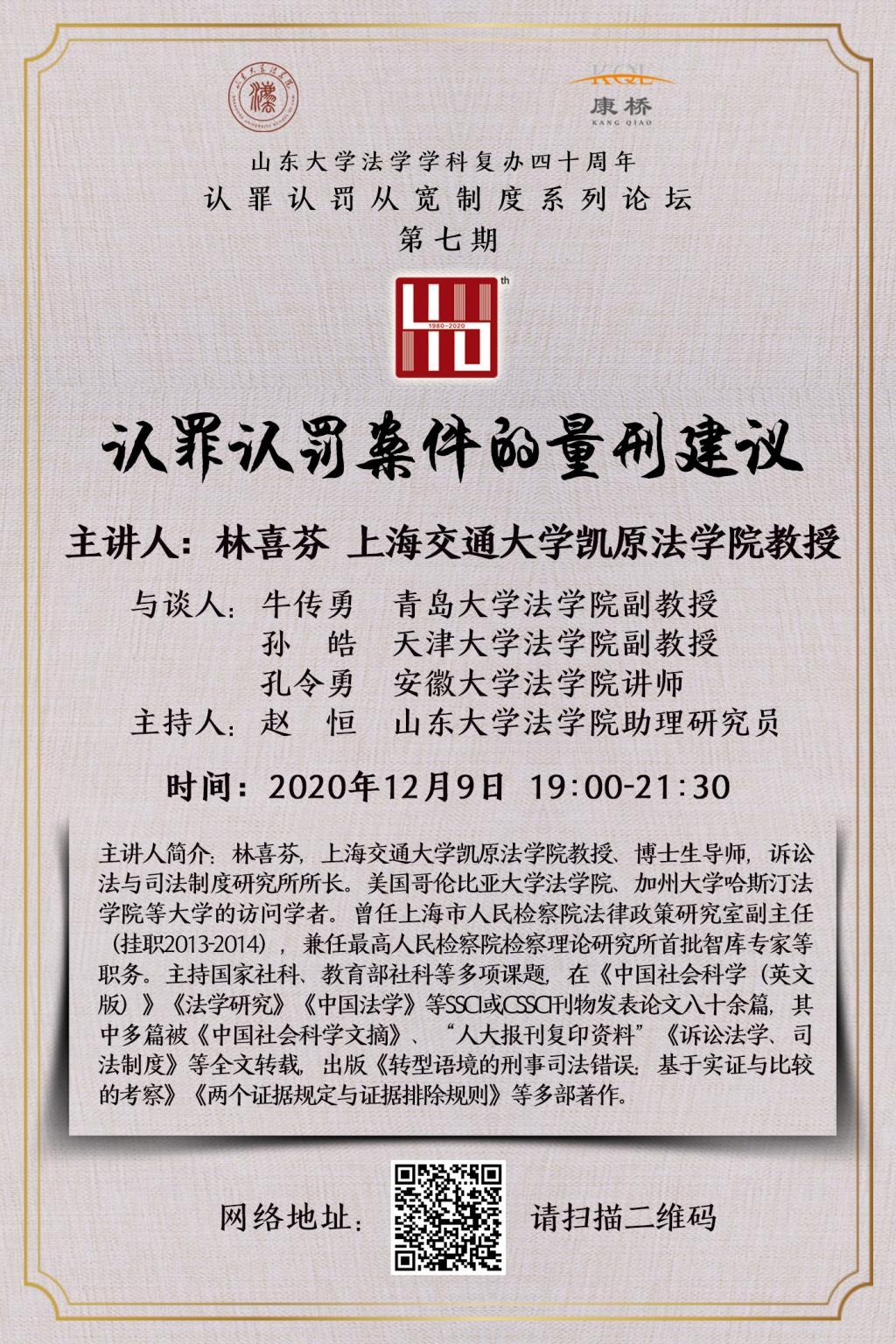 山东大学法学学科复办四十周年认罪认罚从宽制度系列论坛(第七期):认罪认罚案件的量刑建议