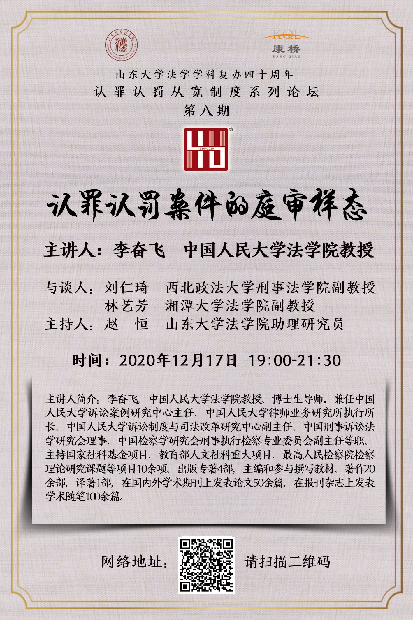 山东大学法学学科复办四十周年认罪认罚从宽制度系列论坛(第八期):认罪认罚案件的庭审样态