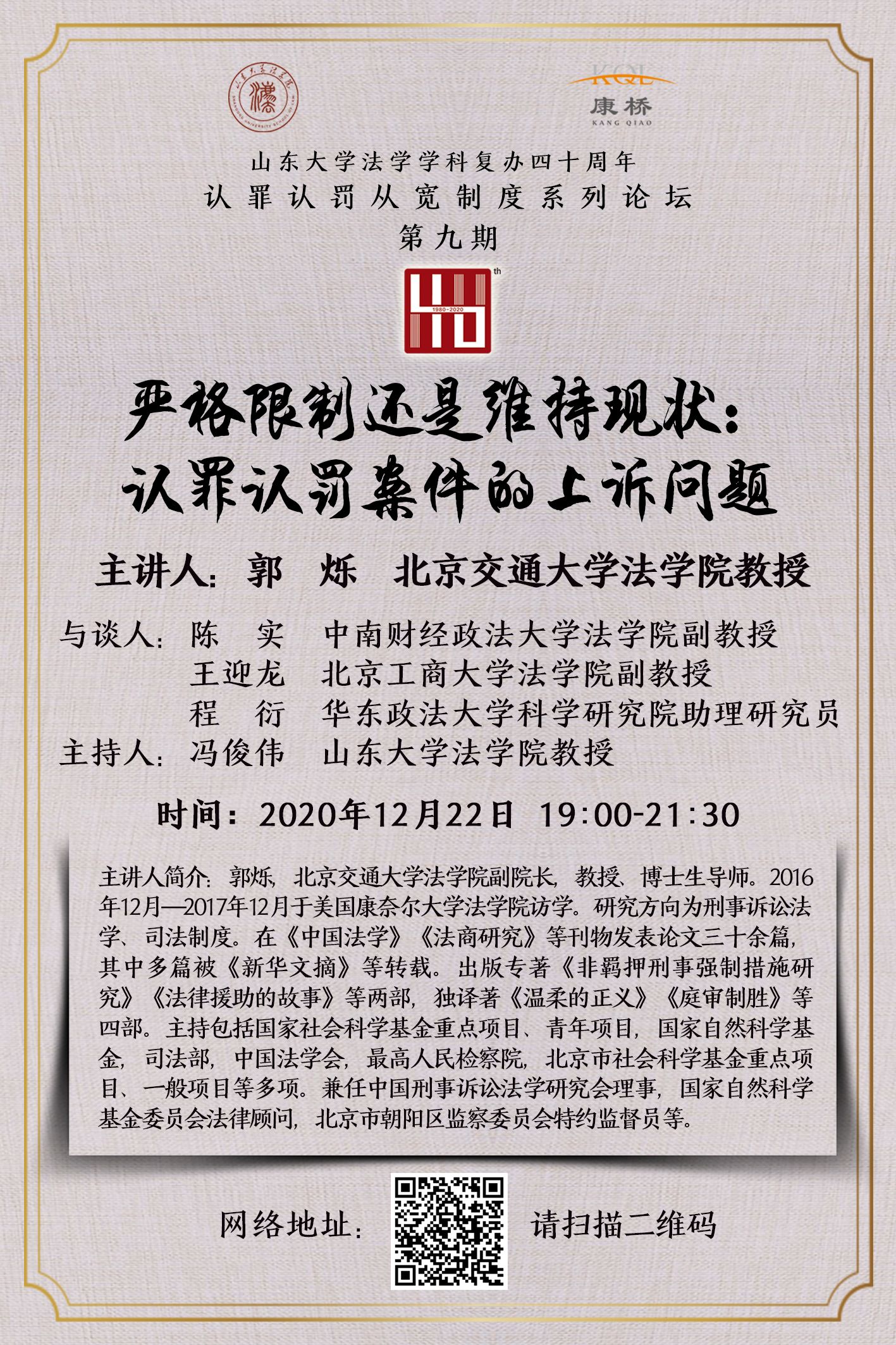 山东大学法学学科复办四十周年认罪认罚从宽制度系列论坛第九期