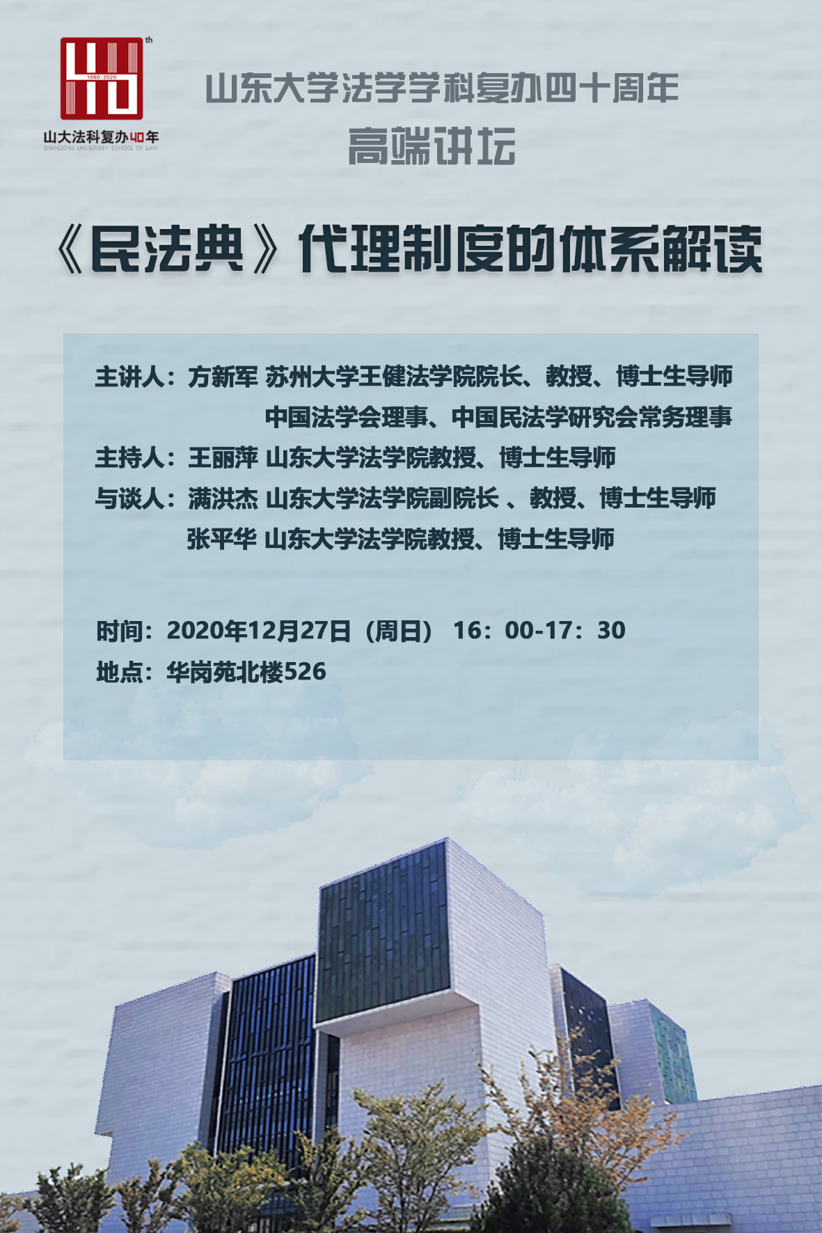山东大学法学学科复办四十周年高端论坛:《民法典》代理制度的体系解读