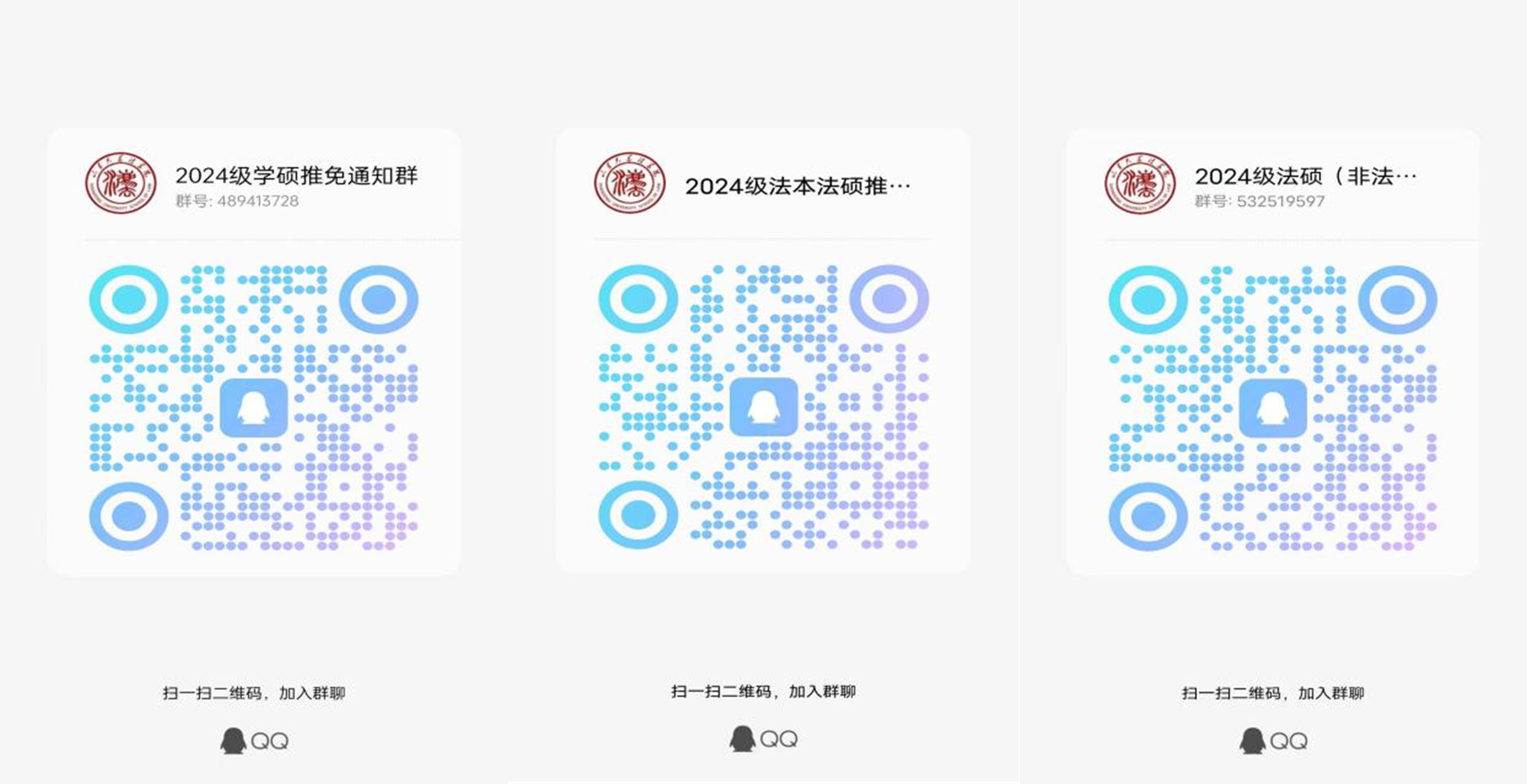 为了更好地沟通联系和组织复试工作,确定来校参加复试考生请于9月22日15:00前加入复试QQ群。QQ群设置了信息验证,入群验证为:本人姓名+手机号码后6位。进群后,所有考生应将“群昵称”修改成“报考专业+姓名”。待所有考生入群后,我院将正式启用QQ群发布消息,请考生时刻关注群通知。