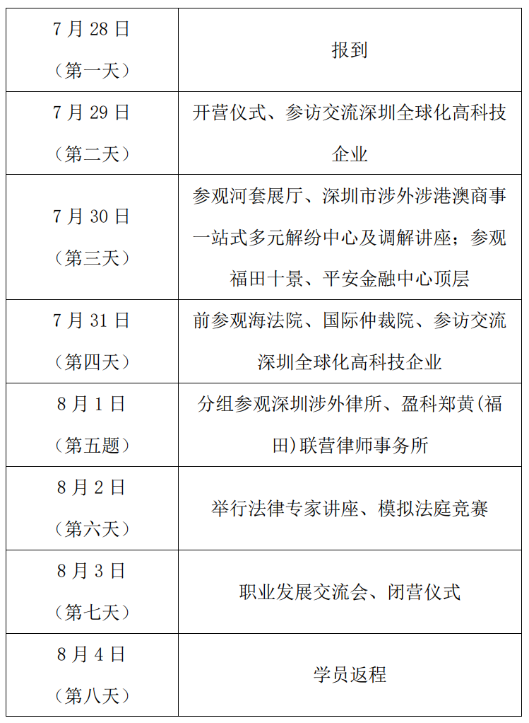 为增强涉外法治人才培养交流合作,完善以实践为导向的培养机制,培养出一批政治立场坚定、专业素质过硬、通晓国际规则、精通涉外法律实务的涉外法治人才,全国首届“涉外法治与湾区实践”青年夏令营拟于2024年7月28日-8月4日在深圳举行。
