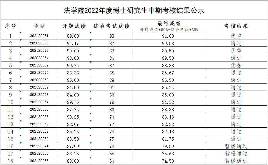 金沙集团1862cc成色2022年度博士研究生中期考核结果公示