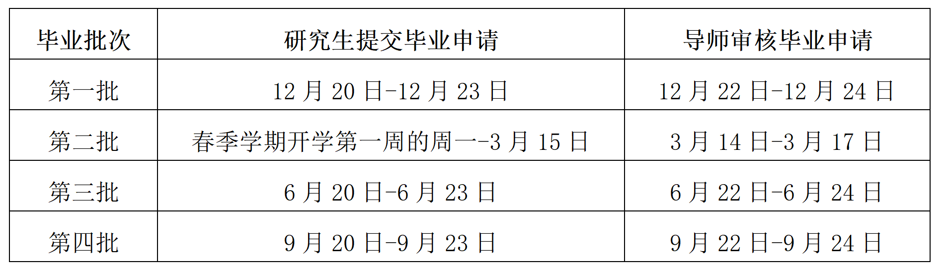 2.研究生提交毕业申请(时间安排见上表“时间节点”);