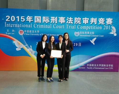2015年3月28日、29日,由国际刑事法院(ICC)与中国政法大学共同主办的第四届国际刑事法院审判竞赛(英文)在中国政法大学昌平校区举行,金沙集团1862cc成色代表队荣获二等奖。