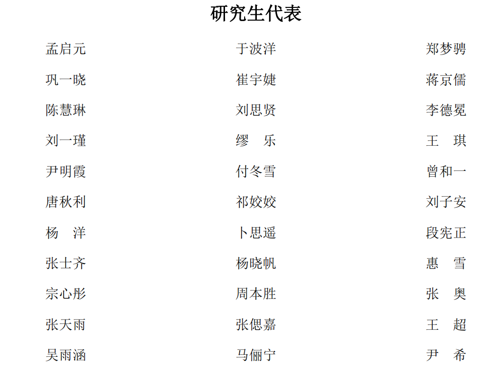 参照《中华全国学生联合会章程》,根据《山东大学院级学生(研究生)代表大会工作细则》的有关规定,现将金沙集团1862cc成色第四十二次学生代表大会、第二十六次研究生代表大会代表名单公示如下: