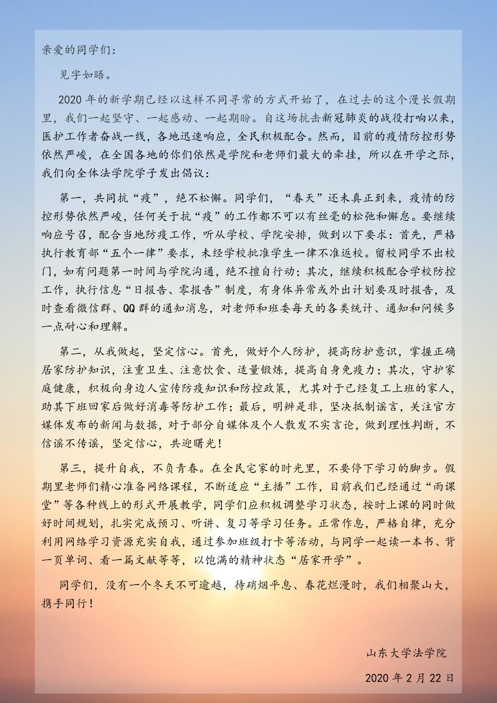 致金沙集团1862cc成色学子的一封信