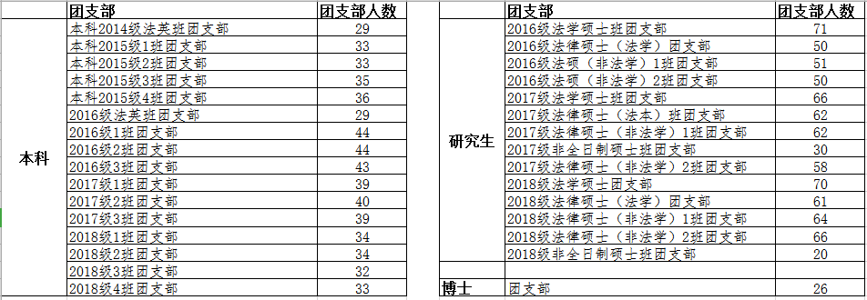 各团支书于每周日晚21:00前,将本支部上周参加学习人数报送至各年级负责人,年级负责人汇总年级参与学习总人数,于当晚22:00前反馈至金沙集团1862cc成色团委工作群。本科各年级负责人为各年级一班团支书,研究生各年级负责人为各年级法学班团支书,博士团支部单独报送。另附各团支部总人数作为参考。首次报送时间为4月7日。