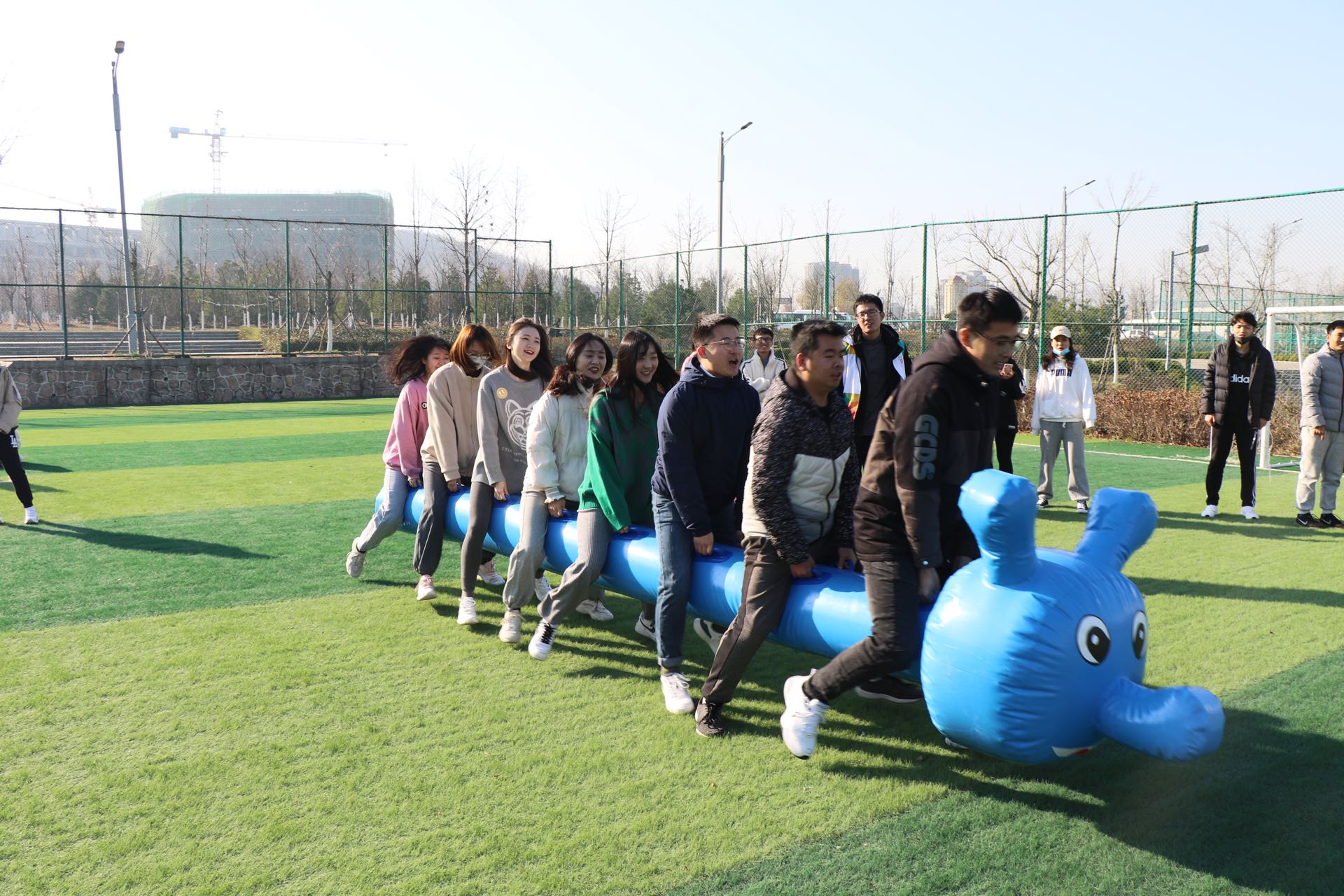 与以往不同,本次团体接力挑战赛将竞技与娱乐相结合。为了充分体现团队凝聚力,提升同学们的参与和合作水平,接力赛共设置了三项趣味运动,分别是两人三足、车轮滚滚和趣味毛毛虫,吸引了来自八个班级19支队伍,共计152名研究生参加。