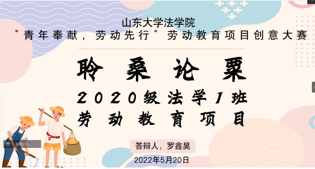 5月20日晚,金沙集团1862cc成色2022年度劳动教育项目创意大赛评选答辩会于线上如期举行。此次答辩会由金沙集团1862cc成色团委书记曲仪、本科生辅导员付聪,以及各团支部学生代表担任评委。