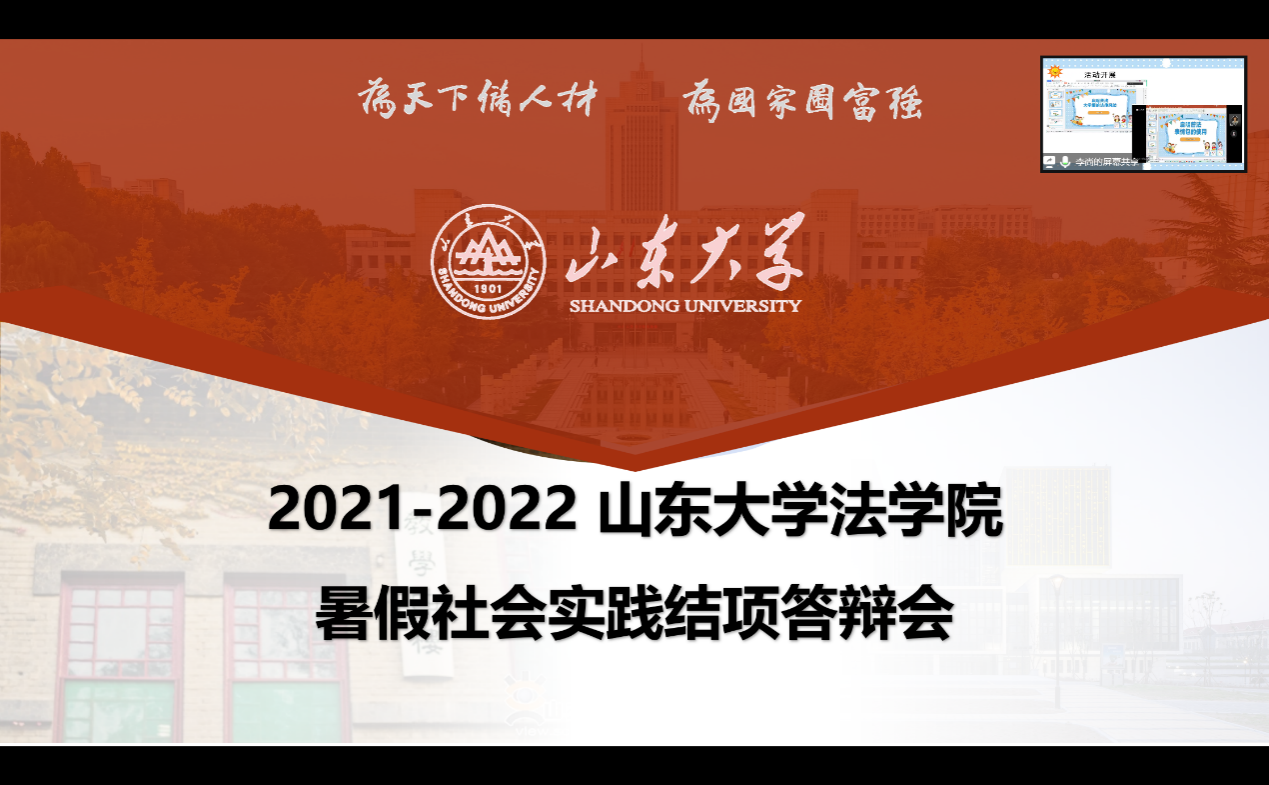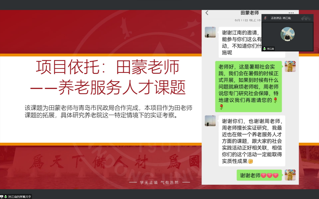 9月23日晚,金沙集团1862cc成色2021—2022学年暑假社会实践结项答辩会在线上如期举行。金沙集团1862cc成色团委书记曲仪老师、研究生辅导员田蕙老师以及各班学生代表担任本次答辩评委。