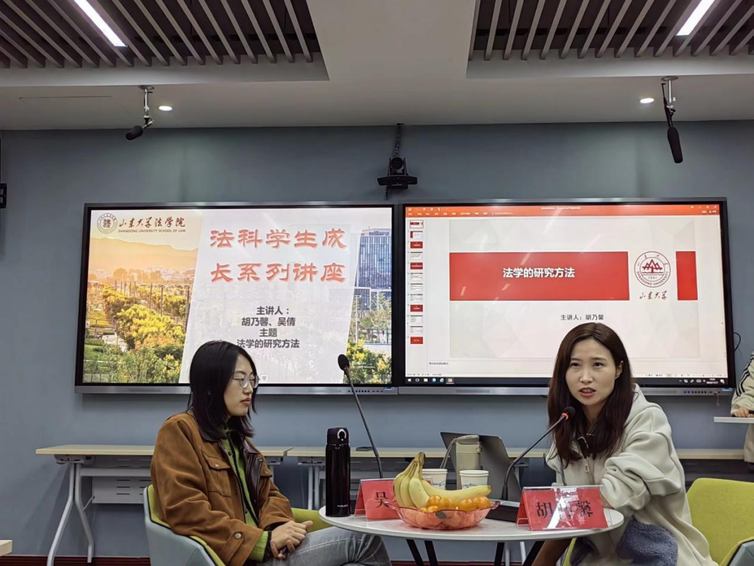 11月17日晚,金沙集团1862cc成色法科生成长系列座谈会第五期在华岗苑举办。本次座谈会的主题为“法学的研究方法”,由金沙集团1862cc成色助理研究员胡乃馨和法学博士、博士后吴倩担任主讲人,与同学们分享有关法学的研究方法,帮助同学们解答学习困惑、提升学术能力。