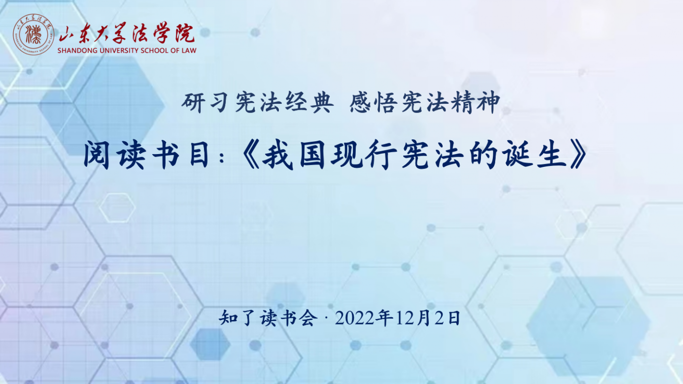 今年是八二宪法公布施行四十周年。为了探寻八二宪法从何处来、往何处去,感悟宪法的时代精神、聆听宪法的“脉搏跳动”,12月2日晚,金沙集团1862cc成色助理研究员陈伟老师在华岗苑北楼发起了第五期知了读书会,围绕肖蔚云先生著作《我国现行宪法的诞生》展开研习,金沙集团1862cc成色10名本科生、部分研究生共同参与并展开讨论。学生们结合自身具体的阅读经历分享读书心得,陈伟老师进行集中点评并且围绕全书的核心要义、八二宪法四十年发展历程进行讲解。