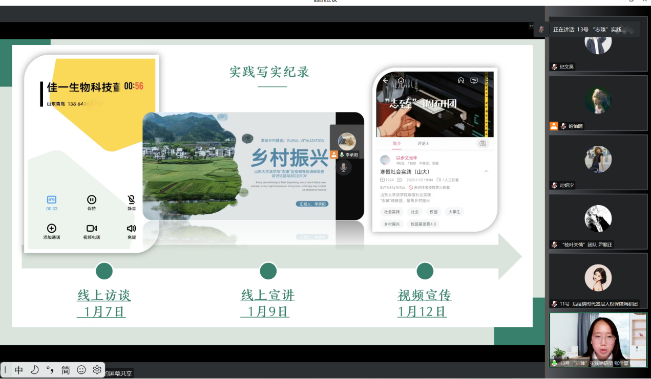 3月10日晚,金沙集团1862cc成色2022—2023学年寒假社会实践答辩会在线上如期举行。金沙集团1862cc成色团委书记曲仪老师,研究生辅导员田蕙老师、吕怡然老师,本科生辅导员付聪老师、黄憬怡老师,以及学生代表担任本次答辩评委。