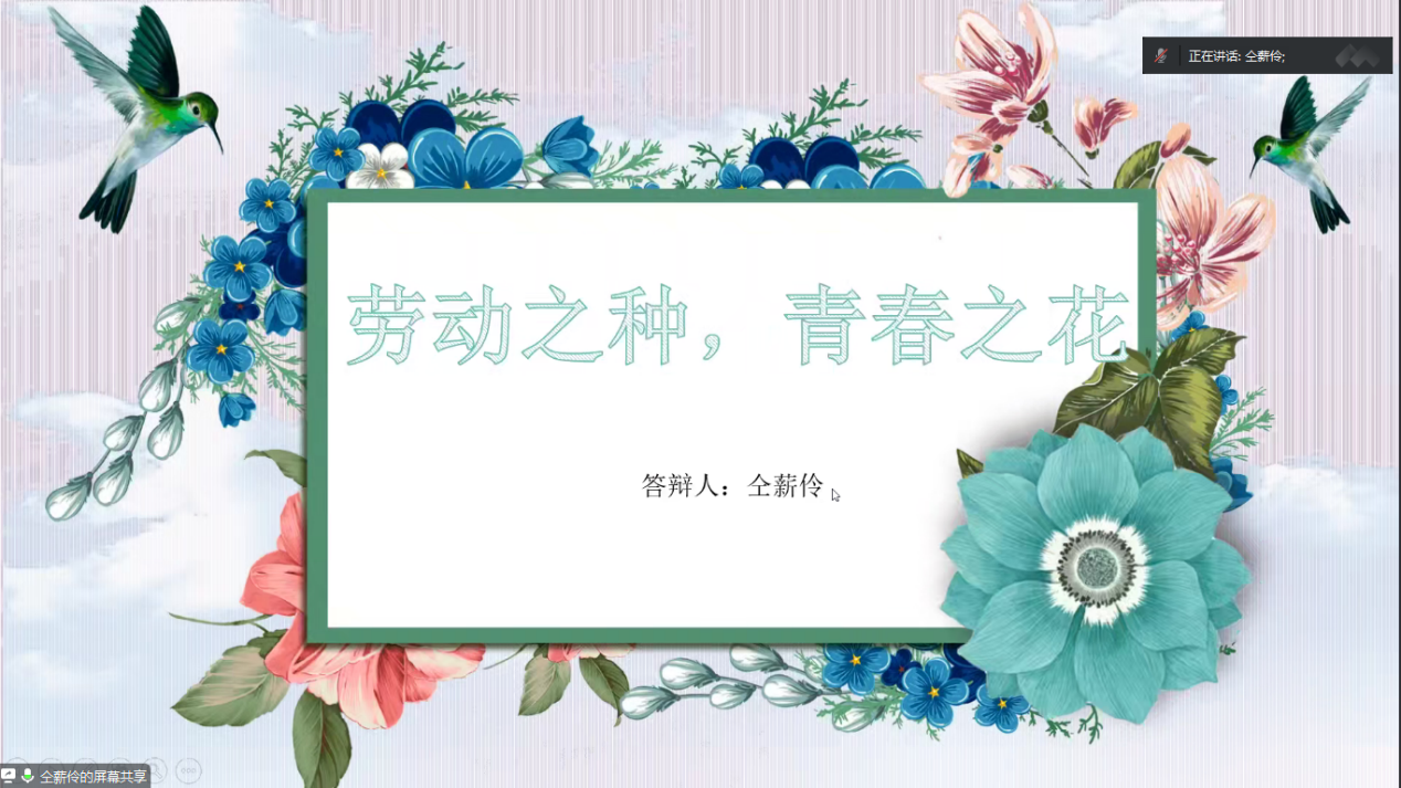 4月7日晚,金沙集团1862cc成色2023年“劳动历练,青春添彩”劳动教育项目创意大赛立项答辩会于线上举行。金沙集团1862cc成色研究生辅导员田蕙、吕怡然,本科生辅导员黄憬怡、付聪,以及各班学生代表担任本次答辩评委。