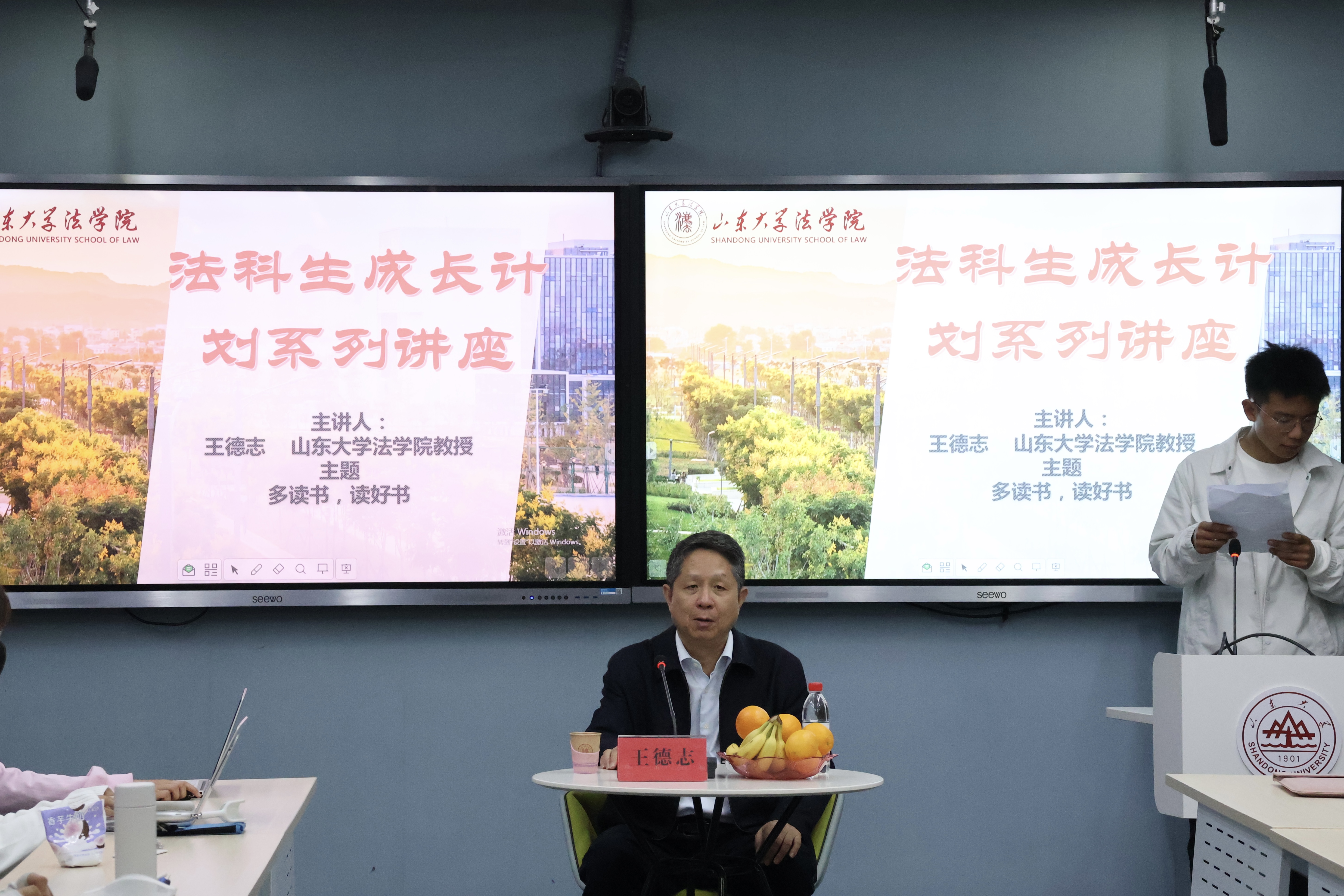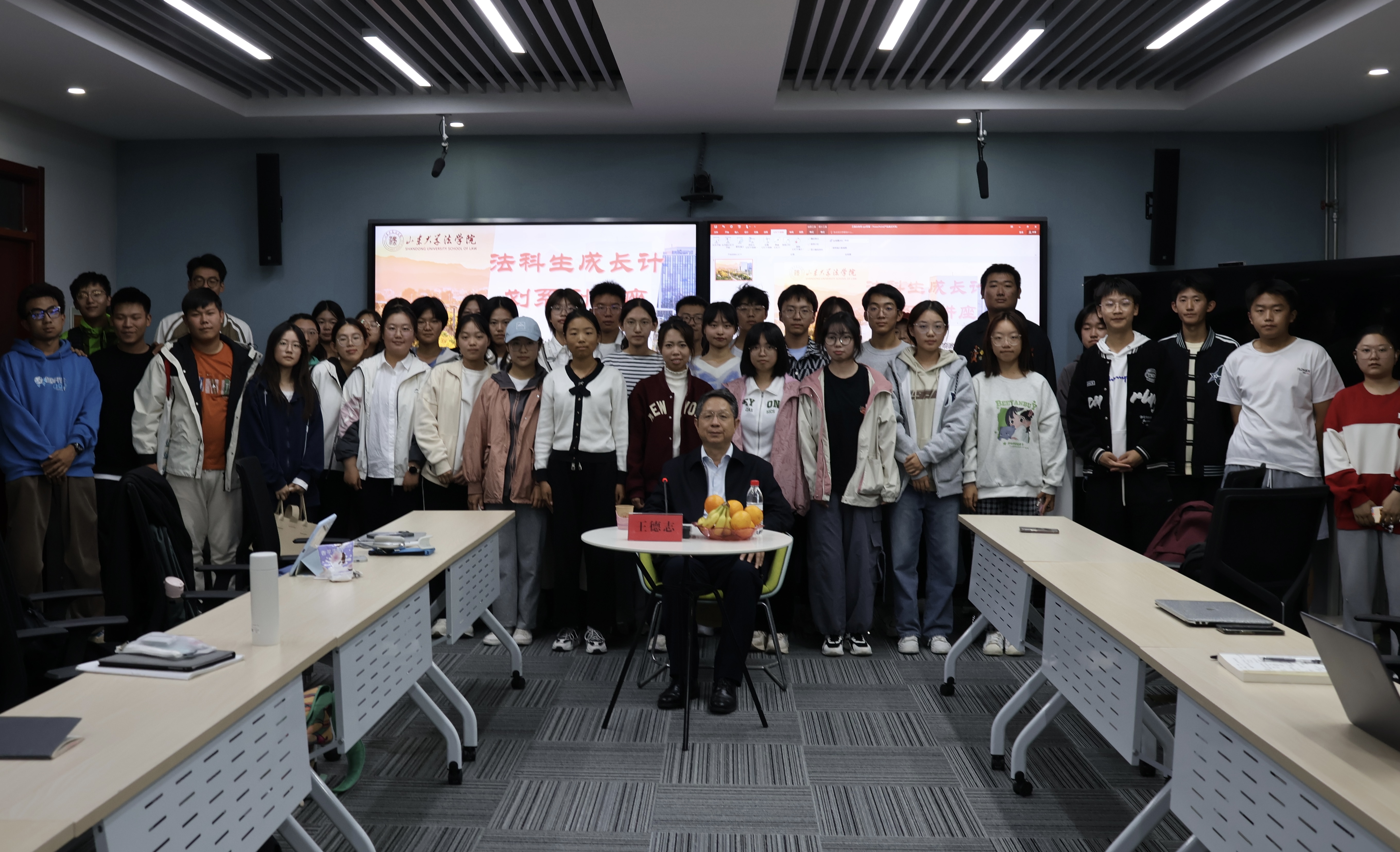 在互动提问环节,王德志教授耐心地解答了同学们关于书籍选择、法学专业学习方法等的问题。他指出,同学们应做到认真学习、终身学习,学会通过读书的方式提升自己,为人生发展积蓄力量。