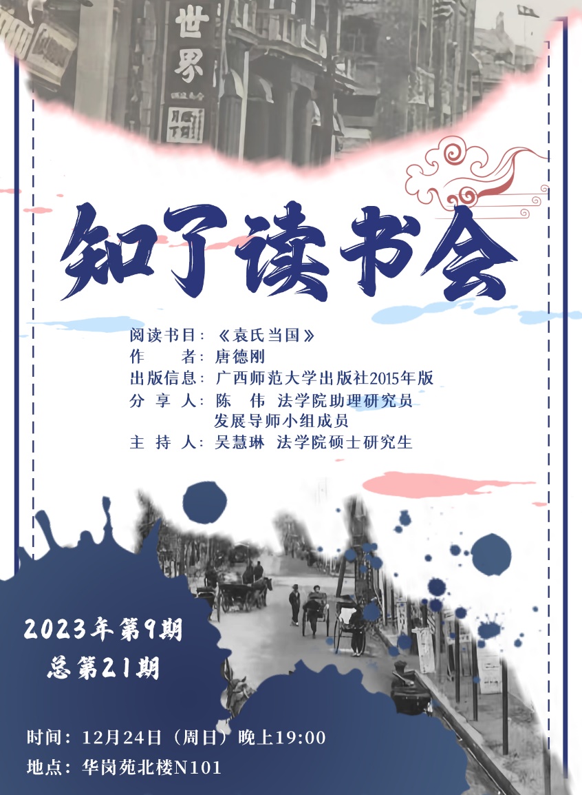 “读一本好书,就是和许多高尚的人谈话”。本期知了读书会使同学们对众多历史人物有了更饱满、立体的认识,对民国时期宪法制度的发展逻辑有了深层次的理解,研习宪法的兴趣得到提高。