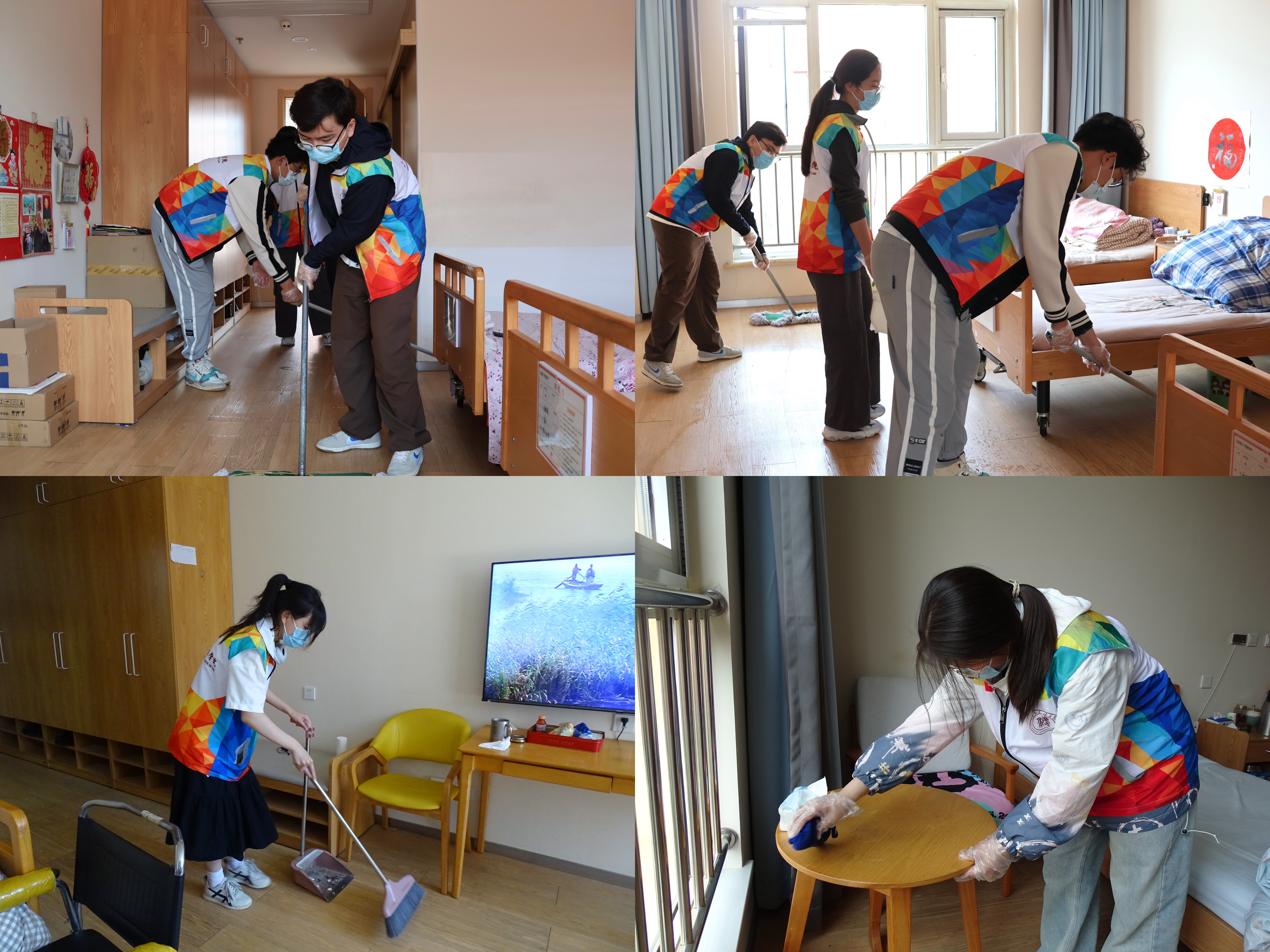 志愿团队积极开展义务劳动,分工合作,扫拖房间、擦拭桌柜、消毒清洁。在劳动过程中与老人们交流谈心,为他们营造更整洁舒适的生活环境。
