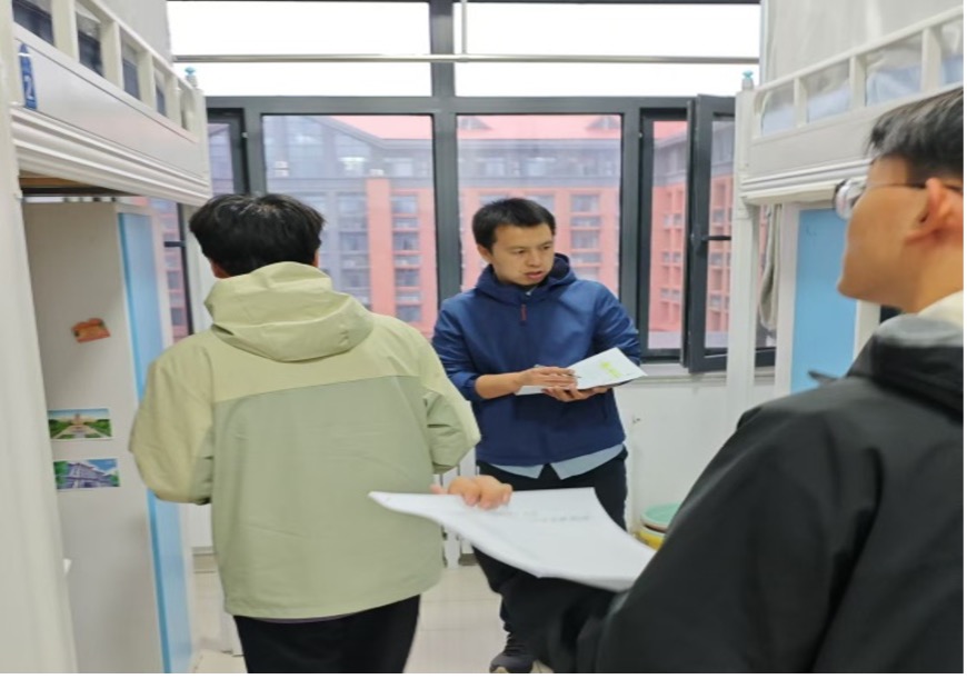 在宿舍卫生安全检查过程中,师生评审主要从卫生与安全两个方面开展细致检查。在宿舍安全方面,对各宿舍是否存在使用违规电器、是否离开宿舍后未断电等违规用电情况进行检查,并排除宿舍存在的其他安全隐患。在宿舍卫生方面,检查人员对个别宿舍存在的整洁度较差等问题进行记录并建议相关宿舍进行打扫整改。