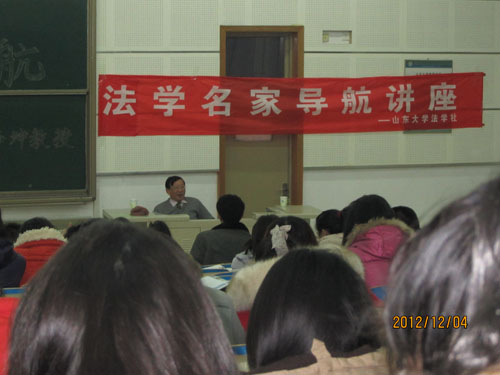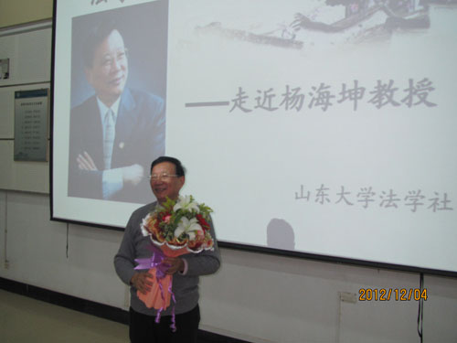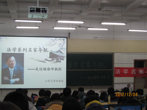 畅谈民主法治建设,,山东大学法学名家系列导航之走近杨海坤教授讲座在兴隆山校区举行。本次讲座由山东大学法学社主办。