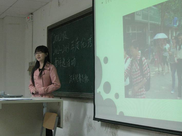 在主持人宣布活动正式开始后,24位参选者依次上台通过照片,视频,幻灯片等形式全方位介绍了过去一年中个人参与的志愿活动以及在活动中取得的成绩。展示后,评委就展示内容提出疑问,与参选者们进行交流。这些志愿活动中,既有贴近生活、显示金沙集团1862cc成色特色的普法行动,也有立足交流、放眼国际的暑期国际学校活动,既有深入地方的济南市规划局交通调查活动,也有渡河翻山、跨越千里的山区支教活动。王传苇的暑期甘肃支教活动在出发时恰遇强降雨,导致铁路交通不畅,经过几天等待后却又在火车上得知前方发生地震的消息。无论是强降雨,还是地震、滑坡和塌方,都没有使他退缩,最终圆满完成了在甘肃的支教活动。王传苇的志愿服务经历给在座同学留下了深刻印象。