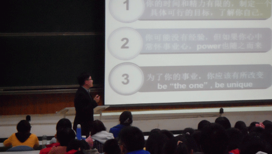 11月6日晚七点,职业规划讲座于兴隆山校区讲学堂101召开,到场的嘉宾有山东大学06级毕业生冉东、常飞和08级张强等。