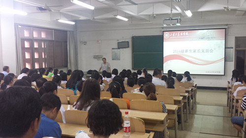 96下午,金沙集团1862cc成色在兴隆山校区举行2014级新生和家长见面会。金沙集团1862cc成色院长齐延平、党委书记盖玉强、党委副书记王苗雨出席见面会,新生辅导员尹上主持。