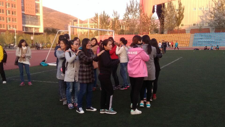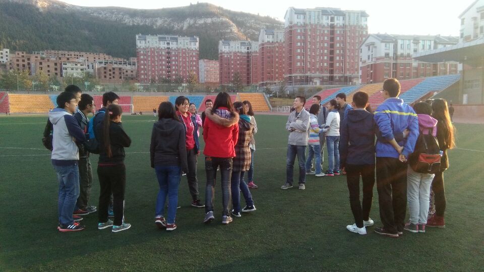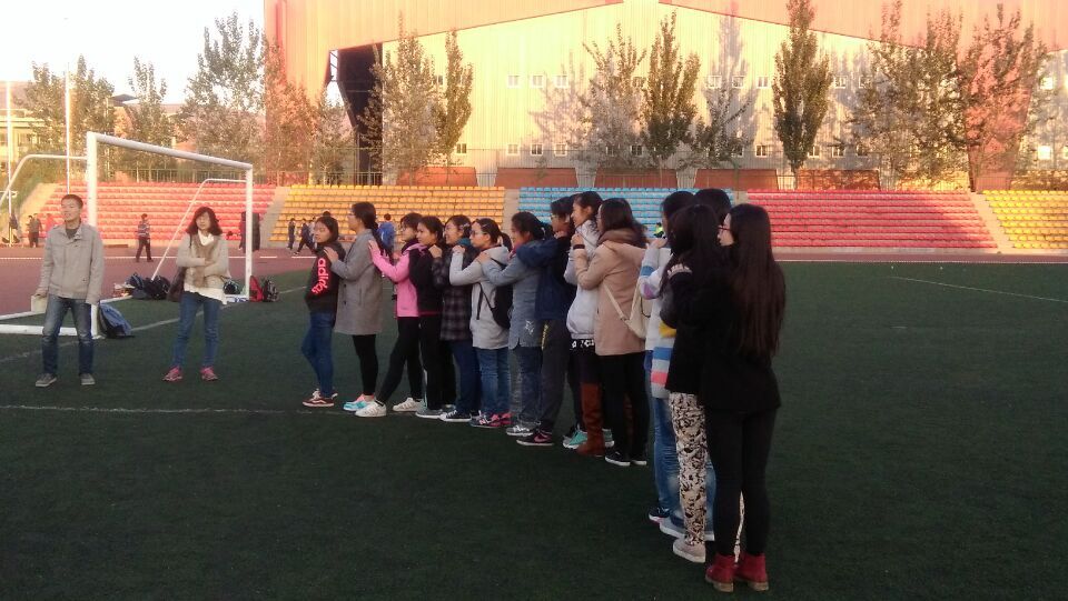 本次活动分三个阶段:相互认识,增进友谊,深层了解。为促进大家相互认识并记住彼此名字,宋义正带领同学们以分组形式开展了“两两认识”及“开火车”游戏,推进同学之间的交流,四个小组之间的比赛增强了游戏的趣味性,提高了同学们的集体荣誉感与竞争意识。在接下来的“刮大风”游戏中,欢声笑语弥漫整个操场,更有全体同学为两名寿星唱生日歌,和谐气氛温暖了秋的凉意。为促进男女同学间的交流,宋义正组织“爱的抱抱”游戏,要求每个小团体至少一名男生,组成兄弟姐妹般的小集体,消除了彼此的距离感和陌生感。最后一个活动为搭肩游戏,说出你的悄悄话,每个人说出自己与搭肩之人的结识经历,进一步增进彼此间的了解,加深了友谊。