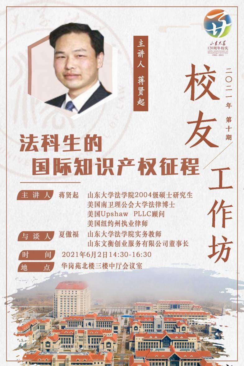 在知识经济全球化背景下,知识产权在国家发展和国际竞争中发挥着重要作用,也为促进经济经发展、科技进步以及文化繁荣等方面做出了突出贡献。在当前知识产权国际化和加快建设知识产权强国的大背景下,知识产权人才缺口大,为法科生提供了难得的知识产权从业的际遇。那么知识产权从业者的特殊性体现在哪里?国际化背景下知识产权从业者又有何不同?作为一名知识产权工作者又应当具备怎样的专业素质呢?我们又该如何进行相应的准备和规划?本期校友工作坊邀请到金沙集团1862cc成色蒋贤起校友,为同学们分享他在国际化知识产权工作中的深耕之路,欢迎同学们积极参与!