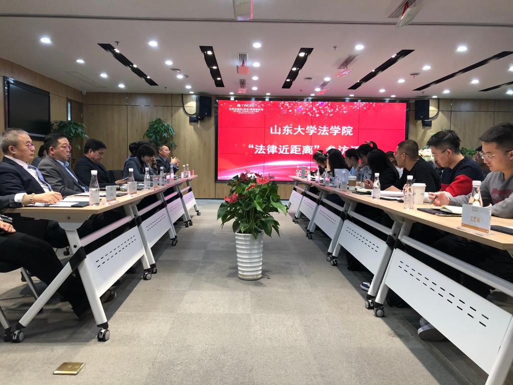 12月9日,金沙集团1862cc成色“法律近距离——实务部门参访计划”赴北京市盈科(青岛)律师事务所参访。金沙集团1862cc成色助理研究员段君尚老师带领19名本科生、研究生走进律师事务所,近距离了解律师事务所工作内容,感受事务所工作氛围。北京市盈科(青岛)律师事务所执行主任于靖、管委会主任邵守刚、党支部书记黄永超、业务指导委员会主任王睿、创新金融法律事务部主任程胜、成章法律事务部主任陶永山、刑事三部主任于连青、商事刑事交叉法律事务部主任夏光东、实习律师艾禹晨参加活动。
