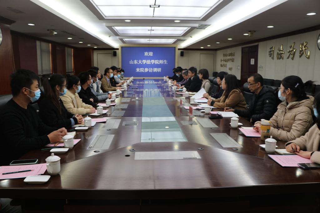 20201125日下午,金沙集团1862cc成色“法律近距离——实务部门参访计划”赴青岛市中级人民法院开展活动,金沙集团1862cc成色助理研究员何晓斌老师带领18名本科生、研究生走进法院,近距离了解法院工作内容。研究室主任张坚,研究室副主任高沛沛,刑一庭副庭长马新,组织人事处副处长高琼,知识产权法庭副庭长暨团委书记刘圣林,教育培训处副处长暨团委副书记孙婷,执行一庭四级高级法官焦兴凯,民五庭四级高级法官杨海东,执行二庭三级法官助理李鹏飞参加活动。