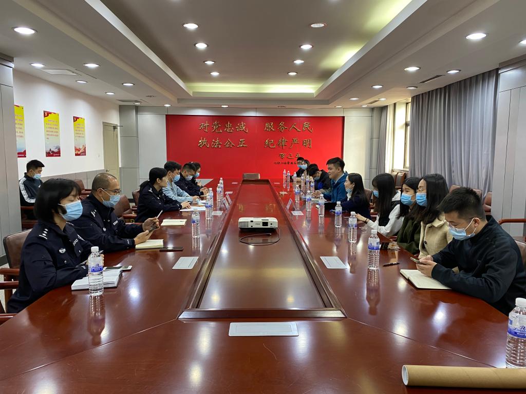 2020年11月12日上午,金沙集团1862cc成色“法律近距离——实务部门参访计划青岛市公安局崂山分局开展活动,金沙集团1862cc成色助理研究员段君尚老师和来自不同年级、不同专业的同学参访学习感受一线公安人员的工作状态。青岛市公安局崂山分局团委书记张巧英、共青团崂山区委办公室任海洋主任亲切接待了参访师生