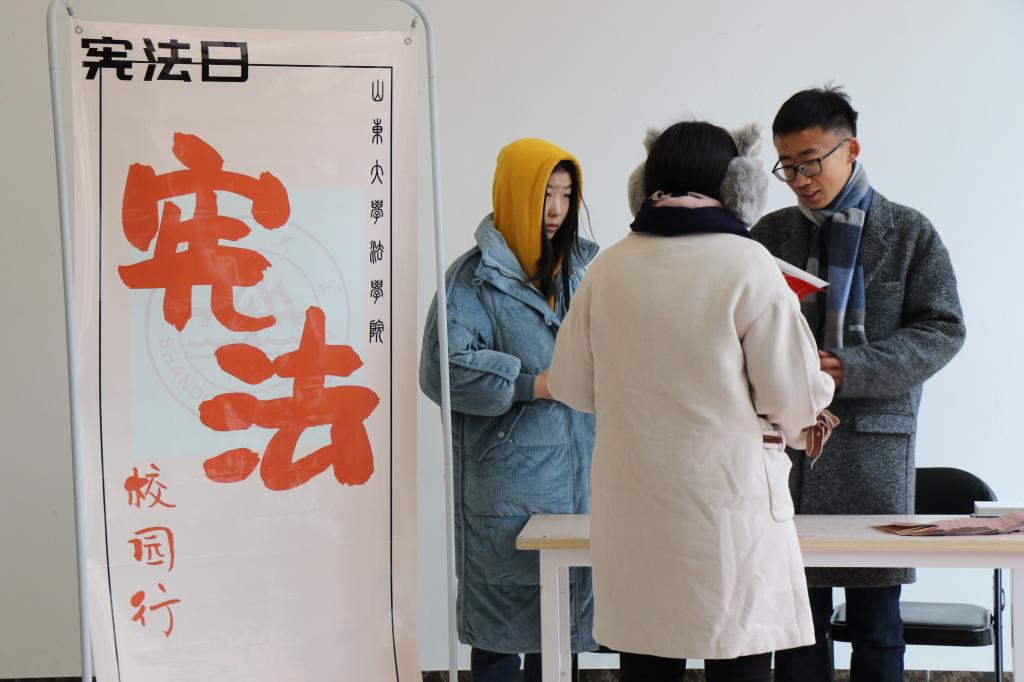 30日,山东大学宪法宣传周之“宪法日校园行”活动在青岛校区校园内顺利开展。在金沙集团1862cc成色团委的领导之下,金沙集团1862cc成色学生会组织举办本次“宪法校园行”活动,旨在迎接第六个“国家宪法日”的到来,贯彻落实党的十九大精神,围绕宪法、法律知识,展开趣味活动,推动同学们深入学习宪法、宣传宪法、弘扬宪法精神、维护宪法权威,培育学习宪法、尊重宪法的校园法治文化。