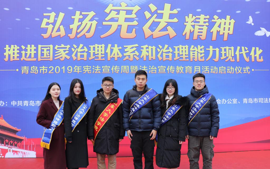121日,青岛市2019宪法宣传周暨法治宣传月活动在市南区万象城举行启动仪式。市委常委、政法委书记宋永祥,副市长、市公安局局长隋汝文,市人大常委会、市政协、市委政法委、市委全面依法治市委员会办公室、市司法局和市南区相关领导同志出席活动。金沙集团1862cc成色及山东大学学生法律援助中心参与活动。