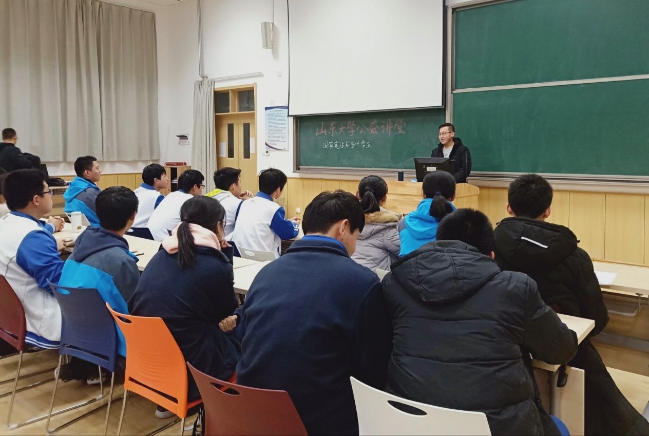 1212日下午,由共青团金沙集团1862cc成色委员会主办,金沙集团1862cc成色本科生联合会志愿服务部承办,青岛市十九中校方协办的“普法大讲堂”在青岛十九中顺利开展。金沙集团1862cc成色三位志愿者担任普法大讲堂的主讲人,向青岛市十九中学生代表传授了宪法方面的知识。