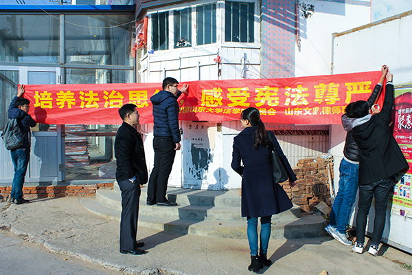 12月4日上午,来自金沙集团1862cc成色的15名志愿者组成了普法宣传队,在宪法日当天,来到了即墨区东里村和南选村,进行了为期两个半小时的普法宣传,为广大人民群众普及宪法知识。本次活动旨在向人们传递有关宪法的知识,激发普通民众对宪法的兴趣。