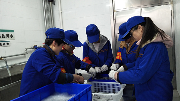 还有一些志愿者,进入了洁碟间和餐具洗消间。帮助阿姨们完成食堂餐具清洗工作。他们用心地用钢丝球擦洗餐具,感受阿姨们平时工作的不容易。