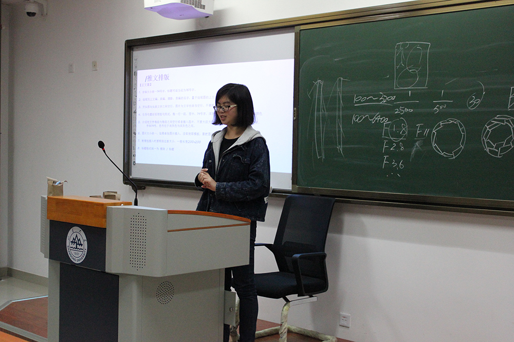 本次活动旨在提高同学们的摄影、新闻写作、微信排版以及视觉设计水平,使同学们进一步丰富自身素养。活动开始后,首先由夏宇明同学为同学们讲解了有关摄影以及新闻写作方面的知识,并亲自为同学们做了示范。接着潘梓涵同学为同学们具体介绍了有关微信排版以及编辑器的选择方面的内容。最后郑晓达同学为同学们展示了如何使用PS制作海报的具体过程。在本次活动中,学长学姐们利用精心制作的PPT,结合自身的丰富经历,耐心的为同学们做了具体而生动的讲解,并积极地与同学们进行互动,展现出他们丰富的经验。前来学习的同学们学习态度认真,思考问题积极,并认真地做了笔记,对本次培训展现出了极大的热情,场面热烈,气氛融洽。培训会的最后,同学们对学长学姐们的精彩讲解报以热烈的掌声。