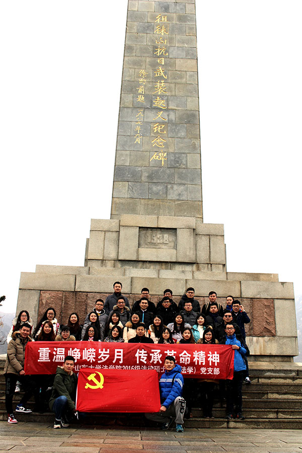 不牢记历史的民族不会拥有未来,不反思失败的民族不会走向富强。12月13日,在第三个南京大屠杀死难者国家公祭日这一天,金沙集团1862cc成色2016级法律硕士(非法学)36名党员在院党委副书记齐向东的带领下来到徂徕山抗日根据地旧址,探访当年抗日起义遗址,瞻仰英雄纪念碑,寻访回顾那段历史。