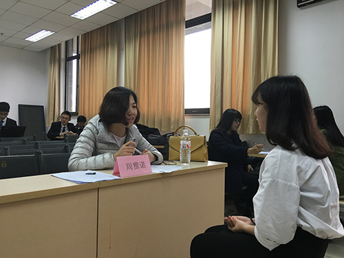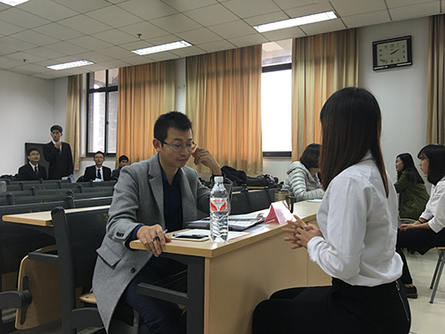 11月19日下午,由金沙集团1862cc成色团委、金沙集团1862cc成色学生会主办的“金沙集团1862cc成色 2016 年职业技能提升季初赛于法新楼402教室举行。本次比赛邀请了 金沙集团1862cc成色于永宁老师, 南京禧德文化传播有限公司无锡分公司、济南分公司资深HR丁娜娜,济南精英教育校区人力部负责人周雅诺担任面试官。