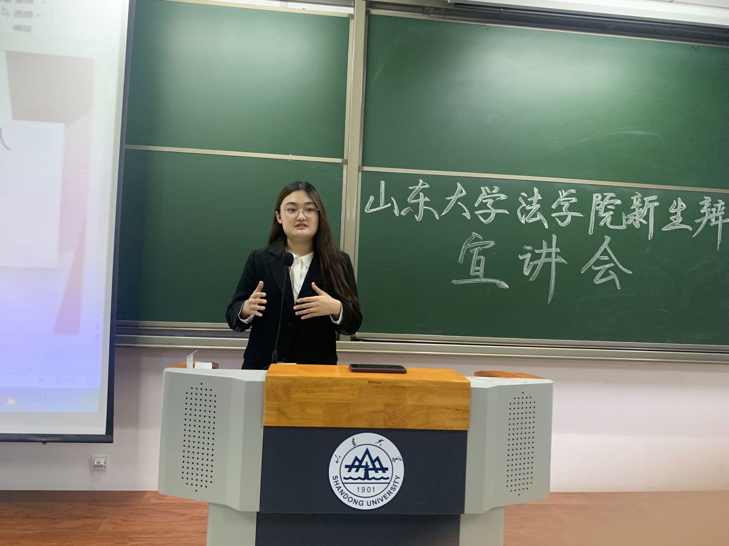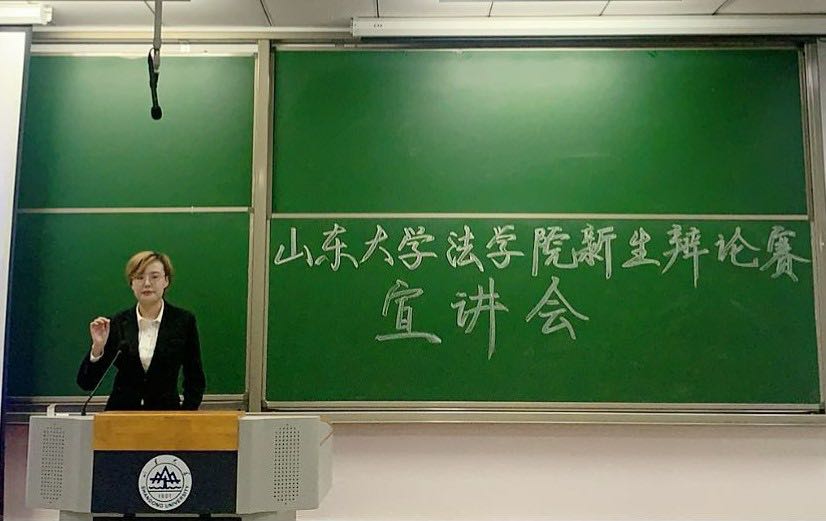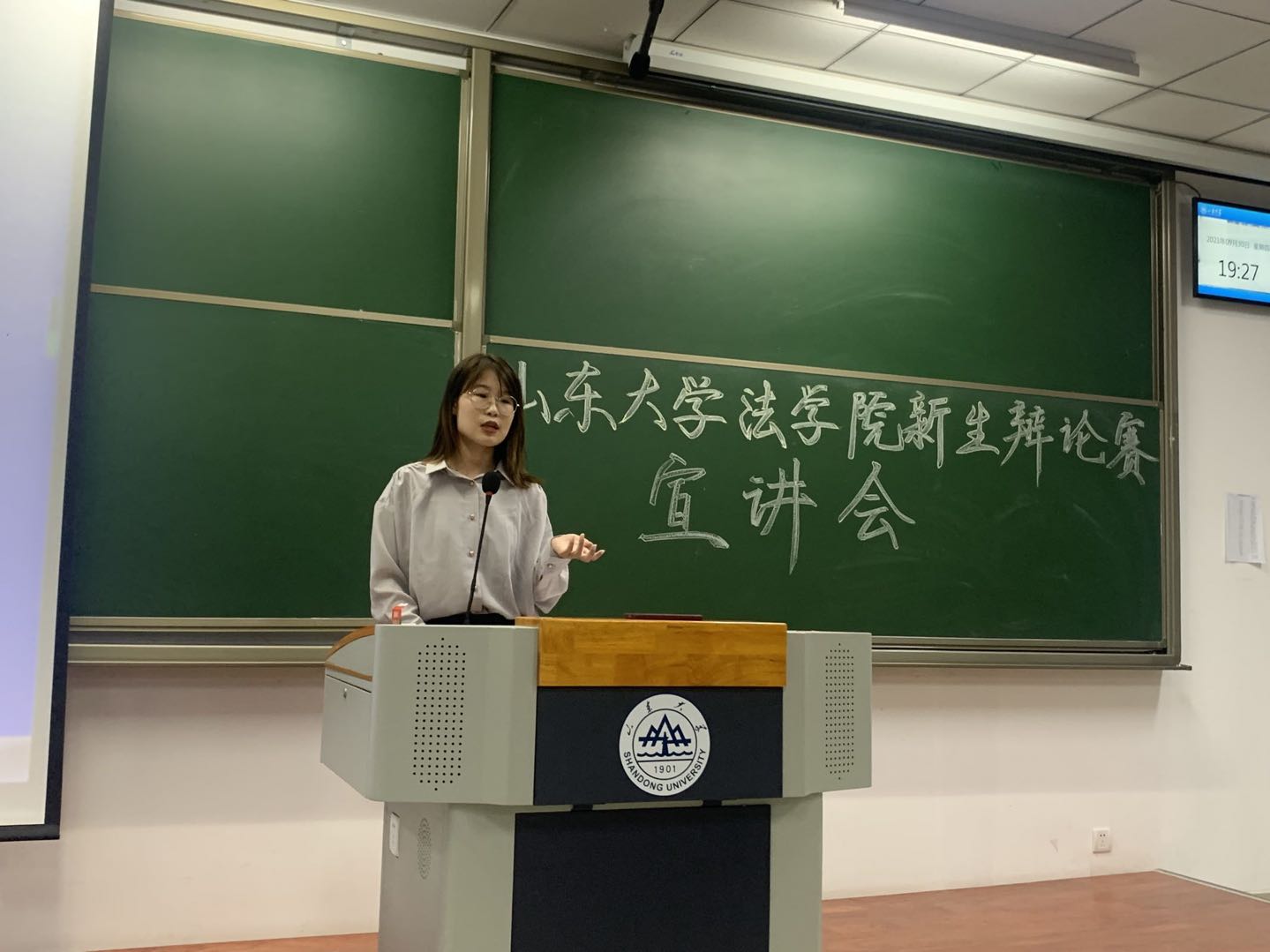 最后一位上台的是金沙集团1862cc成色辩论队队长,2019年金沙集团1862cc成色新生杯辩论赛冠军暨最佳辩手、2019-2020年华语辩论世界杯青岛赛区冠军、双蝶杯辩论赛(96队)八强选手卢柯杉同学。她为同学们介绍了新生赛的比赛流程、进队事项以及校队总体情况,使同学们对怎样加入辩论队有了更加深入的了解。她以华语辩论世界杯八强、最佳辩手张烜铭学长的一辩陈词为例,为同学们详细介绍了一辩陈词的书写方式,使同学们受到了极大的启发。