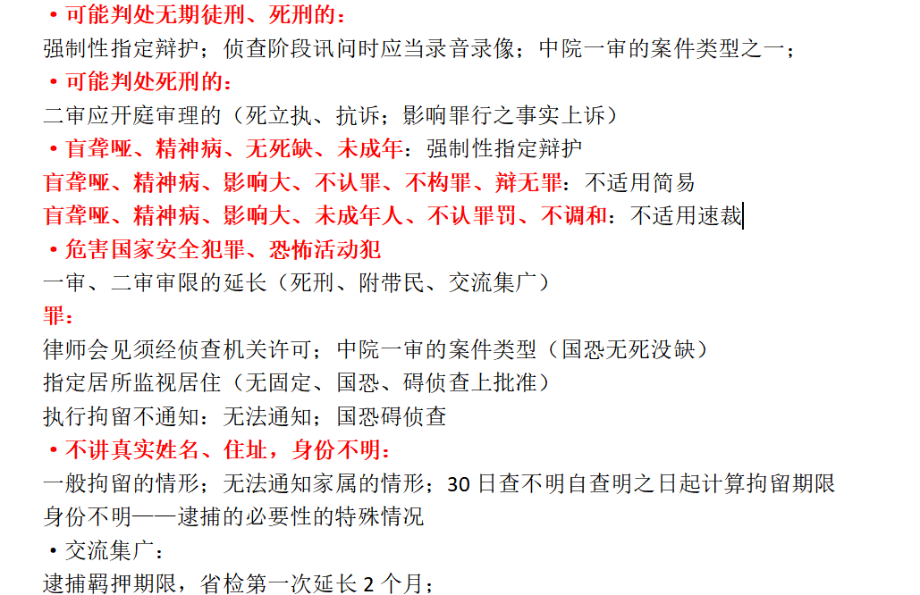 复习时也要注重横向与纵向的对比记忆,比如逮捕、立案、侦查终结以及起诉的条件,再比如多次出现的“可能判处无期徒刑、死刑的”(强制性指定辩护;侦查阶段讯问时应当录音录像;中院一审的案件类型之一)等。至于是否看法考视频辅助学习,可以看个人的时间和选择,其实段老师的课就可以完全涵盖内容,但可以在平时通过做法考题来测试知识的掌握程度。