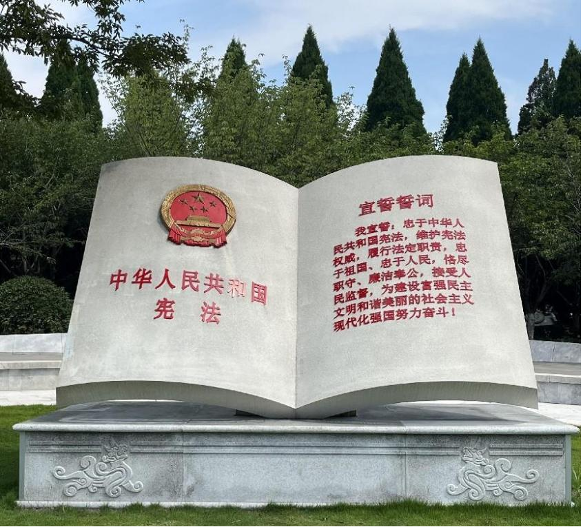 首先,团队成员来到了位于法治文化广场。法治广场设有《宪法》主题雕塑、“法治之光”六面体、“法史长歌”“法源流长”浮雕墙等内容。沿着法治大道一路走来,途中四个卷轴设计生动形象地展示了宪法伴随公民一生,通过将宪法元素融入城市空间,不仅能够树立宪法权威,市民群众还能感受到宪法就在身边的法治氛围。在全国人大常委会法工委国家法室二处处长、黄岛区人大常委会党组成员、副秘书长陈亦超同志和工作人员的讲解下,团队成员们详细了解了广场背后的设计理念以及法治文化的传播方式。广场设计精巧,有力地宣扬了法治精神,发挥普法功能,增强了公众的法治意识。