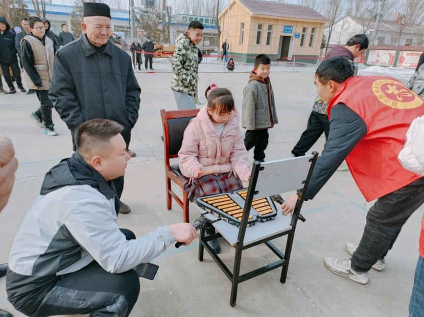 2024年2月6日,在宁夏灵武市郝家桥镇,团队成员马庆玲积极担任家乡新年运动会的志愿者,维持现场秩序。在活动现场,民俗表演、群众独唱等节目精彩纷呈,把新春祝福送到群众身边。同时,运动会的内容也趣味十足,设有拔河、跳绳、摸着石头过河等比赛项目。作为志愿者的一员,在比赛开始前,负责场地布置与器材准备,确保比赛场地安全、整洁。之后,志愿者组织参赛队员签到、分组、通知等。在比赛过程中,协助维护比赛秩序,确保比赛顺利进行。参赛队员们铆足干劲、奋勇争先,围观的群众也热情高涨,村民们在一片呐喊声和欢呼声中感受着春节的热闹和喜庆。