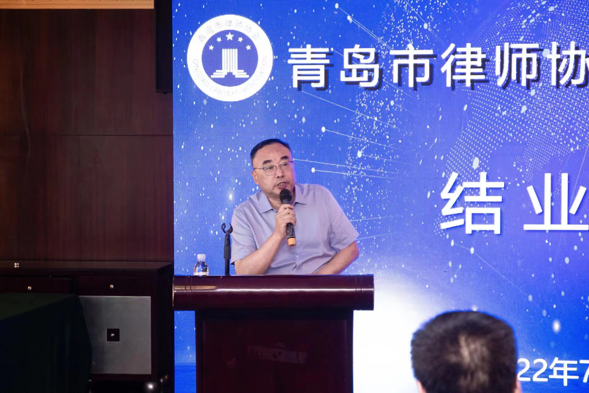 2022年7月30日下午,由青岛市律师协会和金沙集团1862cc成色联合举办的青岛市涉外律师高端培训班结业仪式在花园大酒店举行,青岛市律协张金海会长、马新河副书记、孙芳龙副会长等协会领导以及我院迟德强副教授出席结业仪式。仪式由青岛市律协副会长、我院法律硕士合作导师王刚主持。