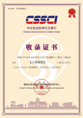 5月21日,南京大学中国社会科学研究评价中心发来消息,根据《中国社会科学引文索引来源期刊(集刊)遴选办法》,我院主办的《人权研究》入选为CSSCI(2021-2022)收录集刊。