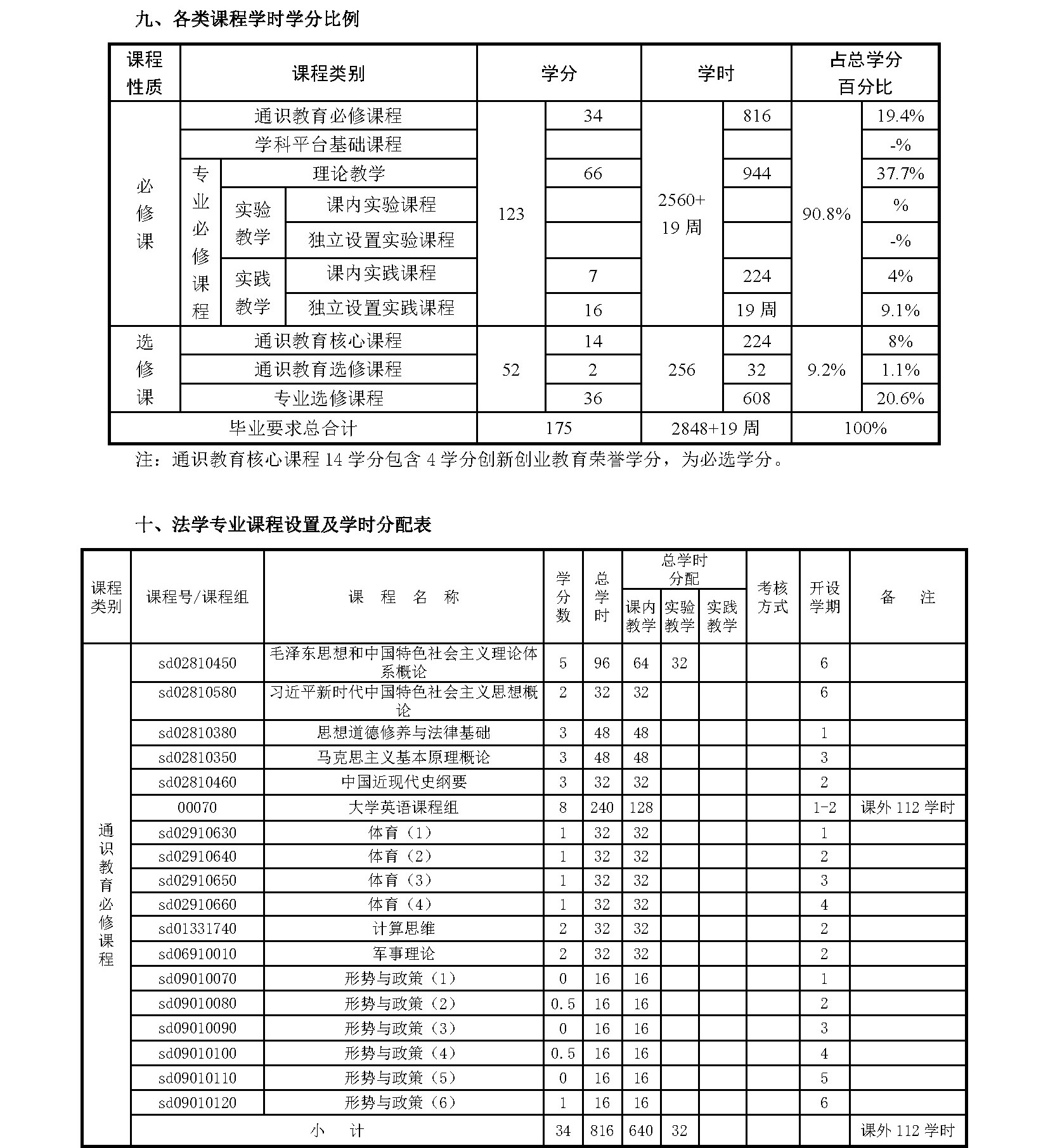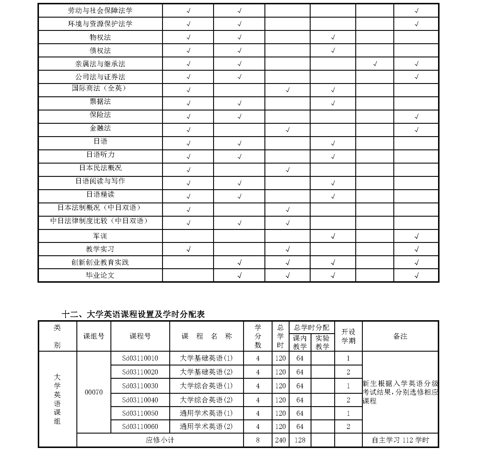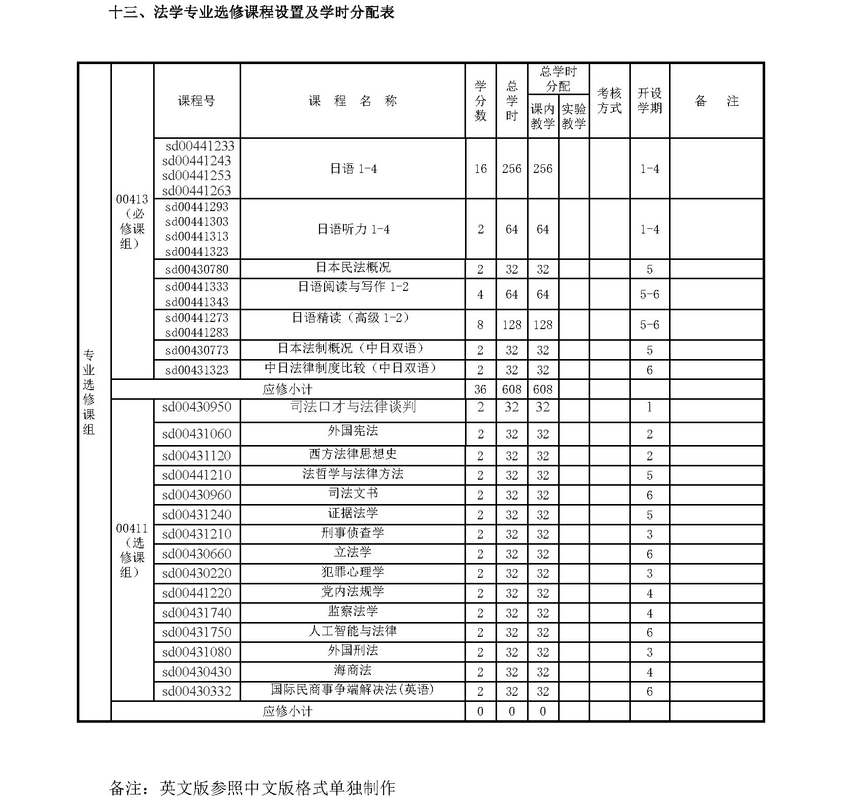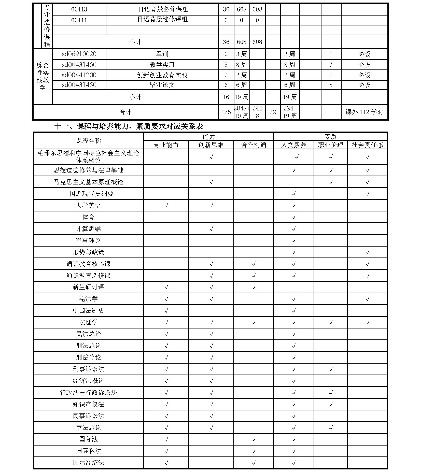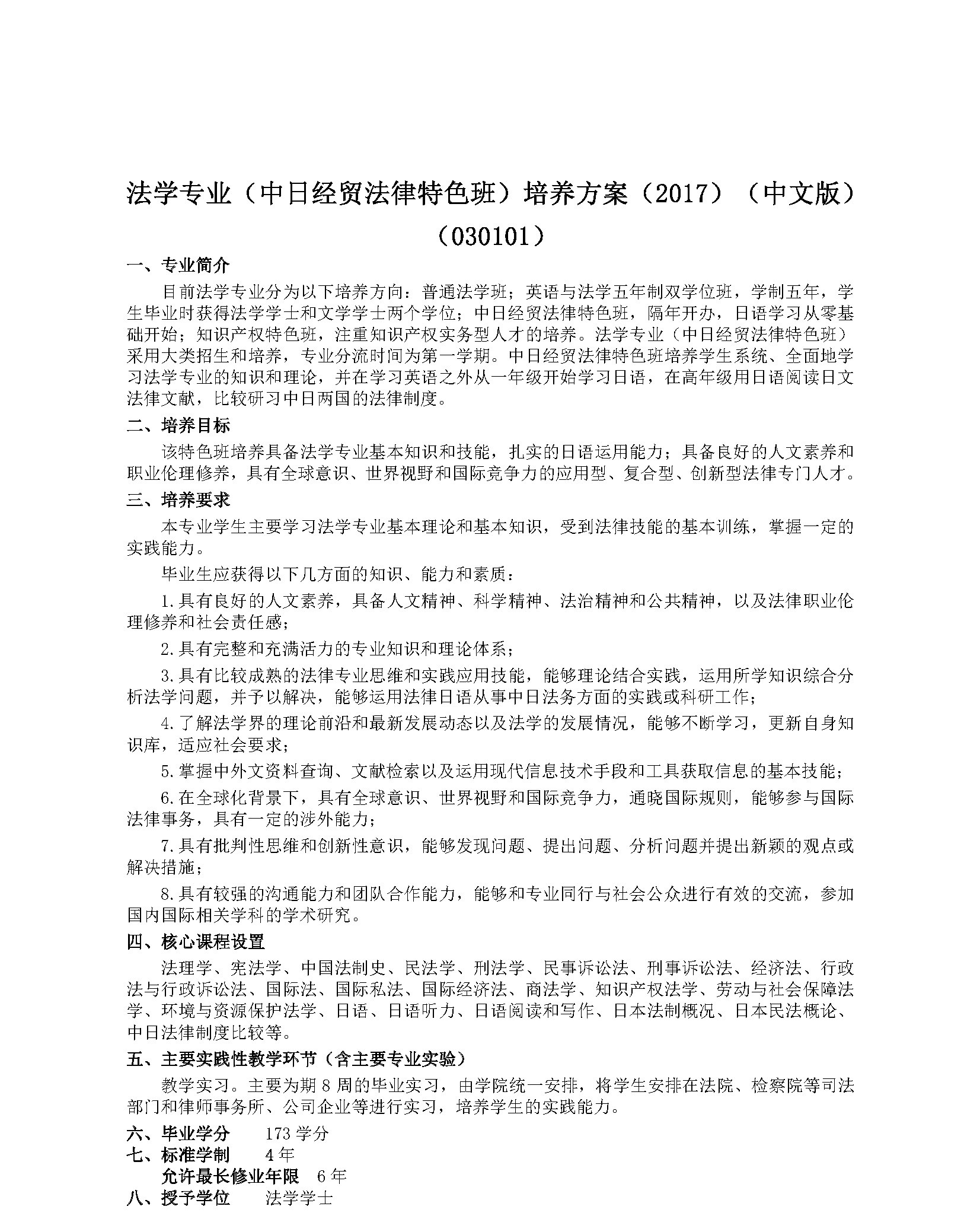 山东大学法学(中日经贸法律特色班)专业培养方案(2017)