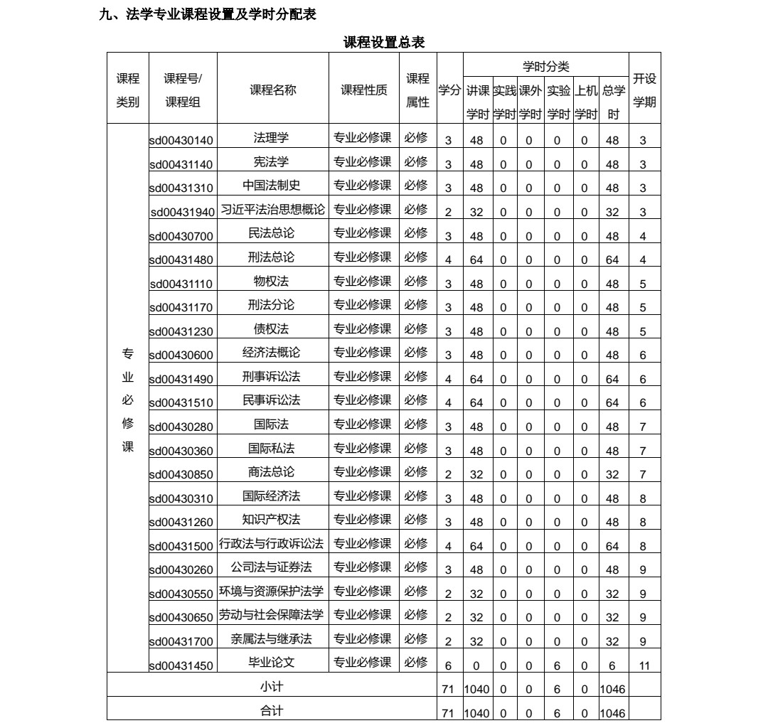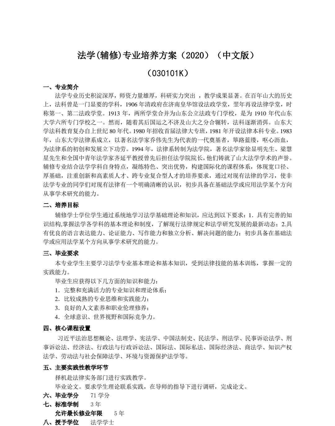 法学(辅修)专业培养方案(2020)