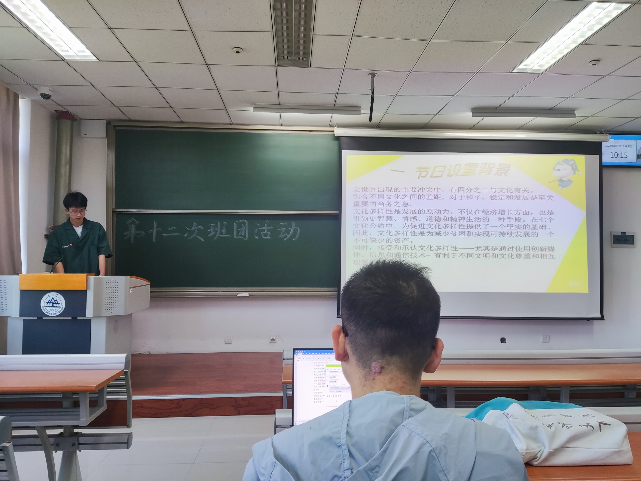 赵泽宇同学首先为我们介绍了世界文化发展日的丰富内涵以及时代意义。全世界出现的主要冲突中,有四分之三与文化有关。弥合不同文化之间的差距,对于和平、稳定和发展是至关重要的当务之急。5月21日是世界文化发展日,2001年11月联合国教科文组织通过《世界文化多样性宣言》宣布5月21日为世界文化多样性促进对话和发展日,该节日的宗旨是“为多样性和包容做一件事”。赵泽宇同学的讲述让同学们充分了解世界文化多样性的重要意义。